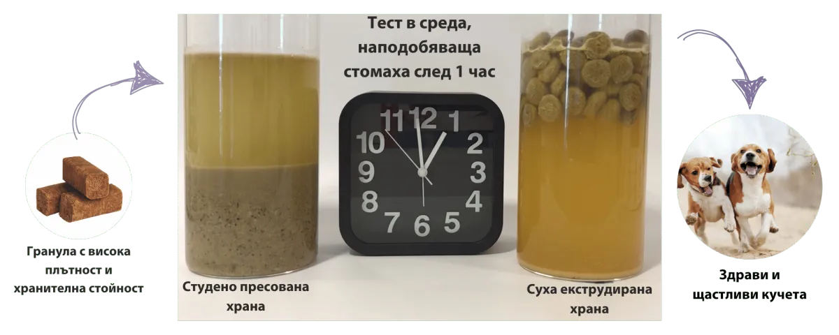 Гранулите се разграждат и усвояват много по-бързо и лесно от обикновената суха екструдирана храна